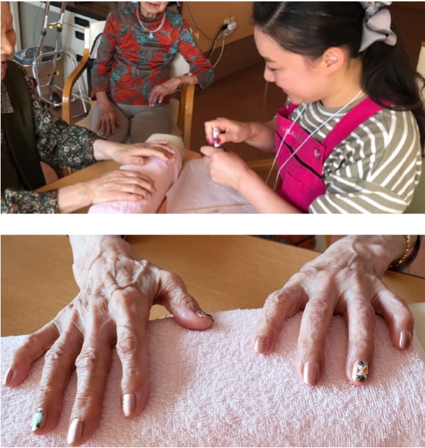 JHWN 認定 福祉ネイリストがハンドトリートメントでのスキンシップによる癒しと楽しい会話が心を和ませてくれます。
